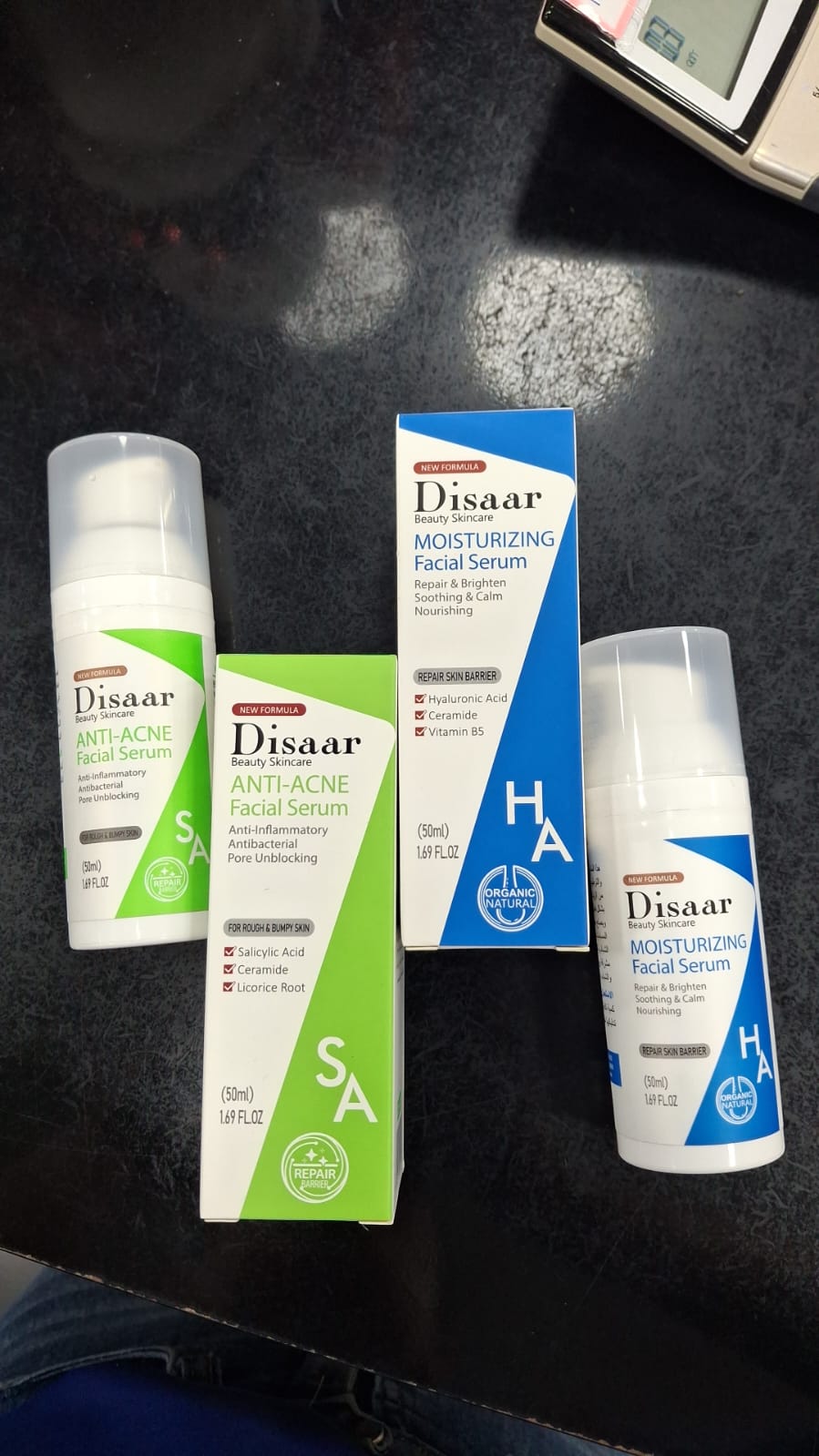 DISAAR ANTI-ACNÉ (Verde): Con Ácido Salicílico (SA). Lucha contra las bacterias del acné, desinflama y desobstruye los poros. Para una piel visiblemente más limpia.